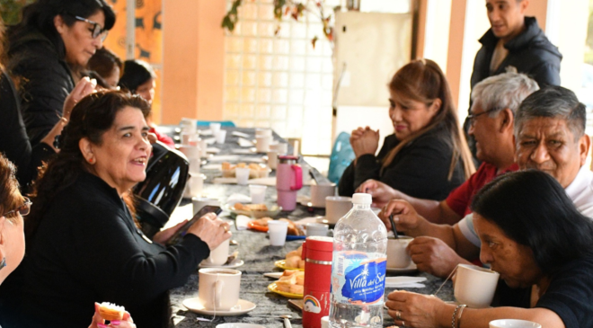 Encuentro de adultos mayores en 28 de Noviembre: desayuno, recuerdos y compañerismo