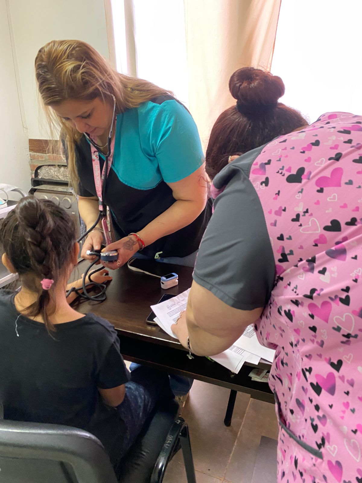 La atención clínica estuvo a cargo de Aldana Rodríguez, quien realizó controles generales y evaluaciones necesarias para completar la documentación escolar requerida.