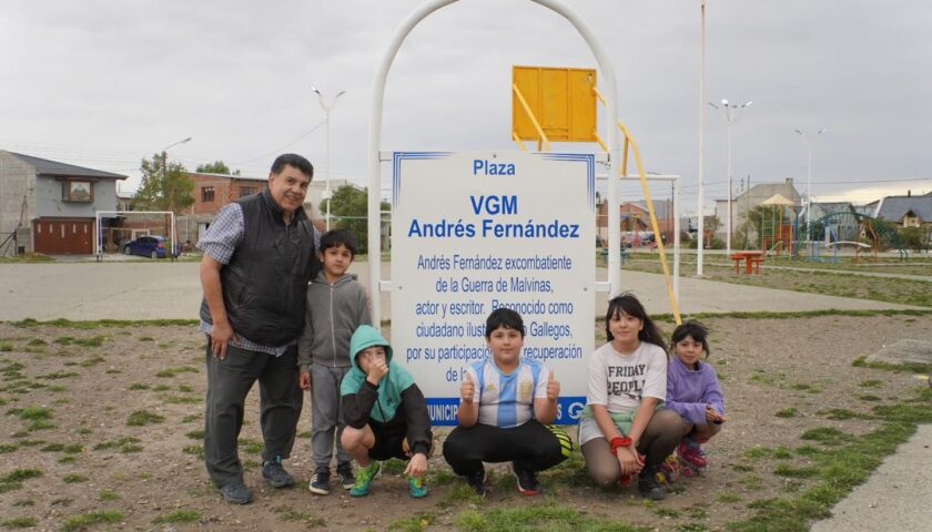 En el marco del programa municipal “Mi Barrio Festeja”, la Municipalidad de Río Gallegos llevó adelante este sábado una jornada de puesta en valor de la plaza que lleva el nombre de Andrés Fernández, veterano de la Guerra de las Malvinas, en un acto cargado de emoción y reconocimiento a quienes defendieron la soberanía nacional.
